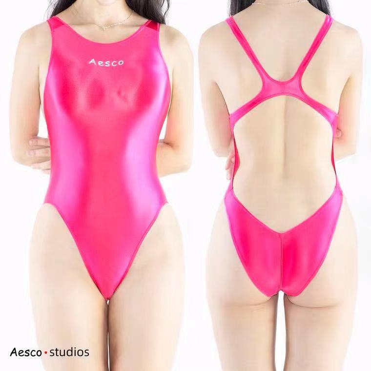伸縮性抜群の光沢ストレッチ素材使用し、肌触りが良くシワになりにくい タイツ風ハイレグレオタード、スクール水着やレースクイーン等のコスプレに最適。